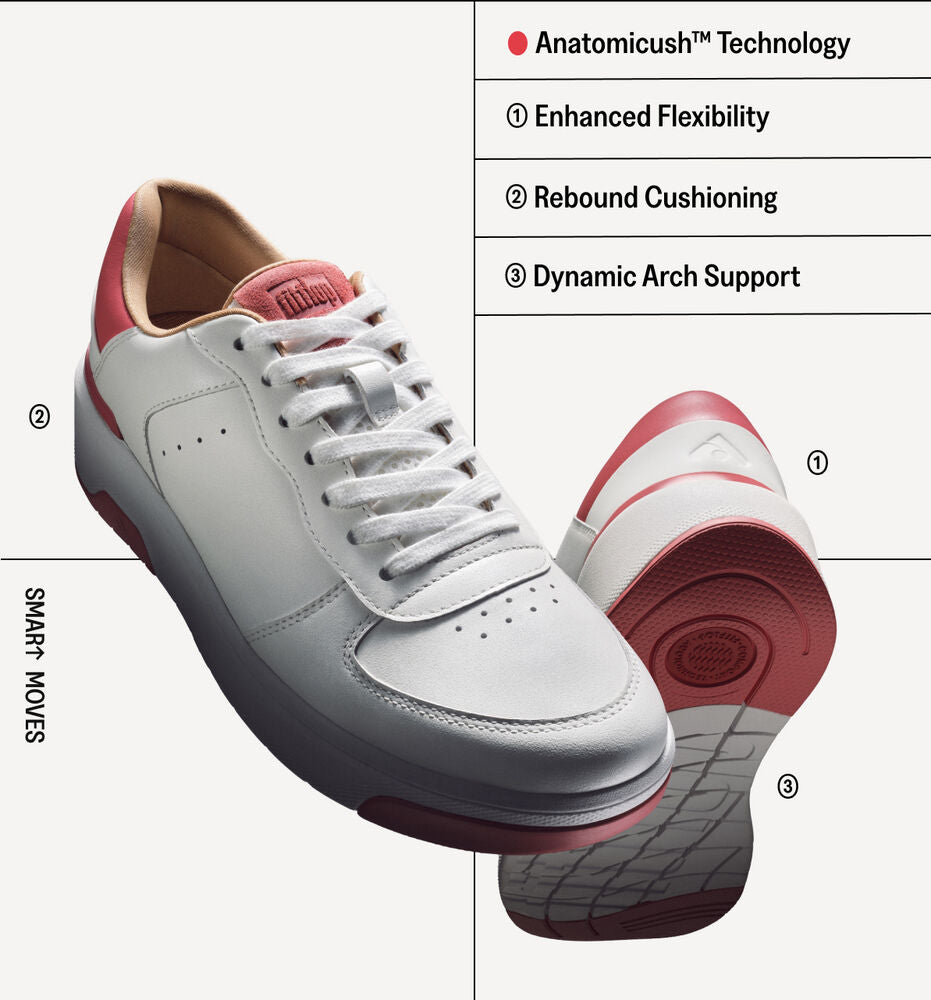 นี่คือรองเท้ารุ่น Rally ที่มีความนุ่มนวลที่สุดเท่าที่เคยมีมาและยังเป็นก้าวสำคัญสู่ความยั่งยืนอีกด้วย รองเท้าผ้าใบยอดนิยมของ FitFlop ที่นำกลับมาปรับใหม่นี้ผสมผสานความเท่แบบเรโทรและพื้นกันกระแทกของพื้นรองเท้าแบบเครป (crepe) เข้ากับนวัตกรรมพื้นรองเท้าแบบ non-EVA ที่ย่อยสลายได้ 100% รุ่นแรกของ FitFlop พื้นผิวด้านบน ส่วนบนของรองเท้าเป็นแบบคลาสสิกสะอาดตาพร้อมแพทเทิร์นยกระดับใหม่ ตัดเย็บด้วยหนังกลับที่นุ่มเป็นพิเศษเพื่อเท็กซ์เจอร์ที่น่าสนใจ นวัตกรรมพื้นรองเท้า เทคโนโลยี Anatomicush™ ที่เบา ยืดหยุ่น และรองรับแรงกระแทกได้อย่างสมบูรณ์แบบ เอกสิทธิ์เฉพาะของ FitFlop ได้รับการสร้างสรรค์ขึ้นใหม่ใน PU ที่ย่อยสลายได้ ซึ่งเป็นวัสดุนวัตกรรมใหม่ที่สามารถย่อยสลายได้อย่างเต็มที่โดยส่งผลกระทบต่อสิ่งแวดล้อมน้อยลง ซึ่งอยู่ภายในพื้นยางพาราธรรมชาติแบบ crepe sole ที่มีน้ำหนักเบา ซึ่งเป็นยางที่ยืดหยุ่นและนุ่มเป็นพิเศษ ไม่เพียงแต่เพิ่มความสบายและการยึดเกาะใต้ฝ่าเท้าอันน่าทึ่ง (เหมาะกับเส้นทางในทุรกันดาร) แต่ยังสามารถย่อยสลายได้ตามธรรมชาติ (biodegradable) และวัตถุดิบที่มาจากแหล่งที่มีการดูแลอย่างยั่งยืนอีกด้วย เช่นเดียวกับ Rally ทุกรุ่น แบบดั้งเดิม รูปทรง 'รองเท้าเทนนิส' แบบเก่าใช้ได้กับทุกสไตล์ของคุณ พื้นยางดิบ crepe sole มีลักษณะรอยย่น และสีธรรมชาติให้ลุคลำลองและแนวแฟชั่น และพื้นรองเท้า PU/crepe แบบยืดหยุ่นพิเศษที่ย่อยสลายได้เหล่านี้ยังเป็นมิตรต่อโลกมากขึ้น ในขณะเดียวกันก็ช่วยให้เท้าของคุณเคลื่อนไหวได้อย่างเป็นธรรมชาติ และนุ่มนวล