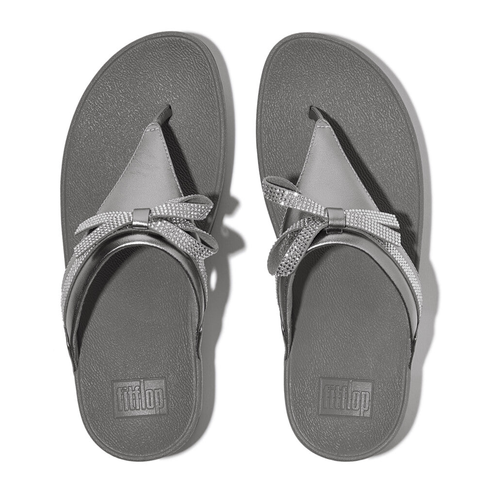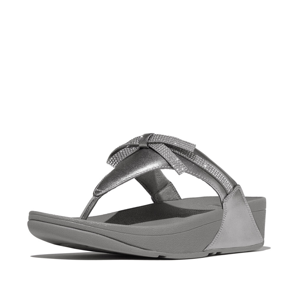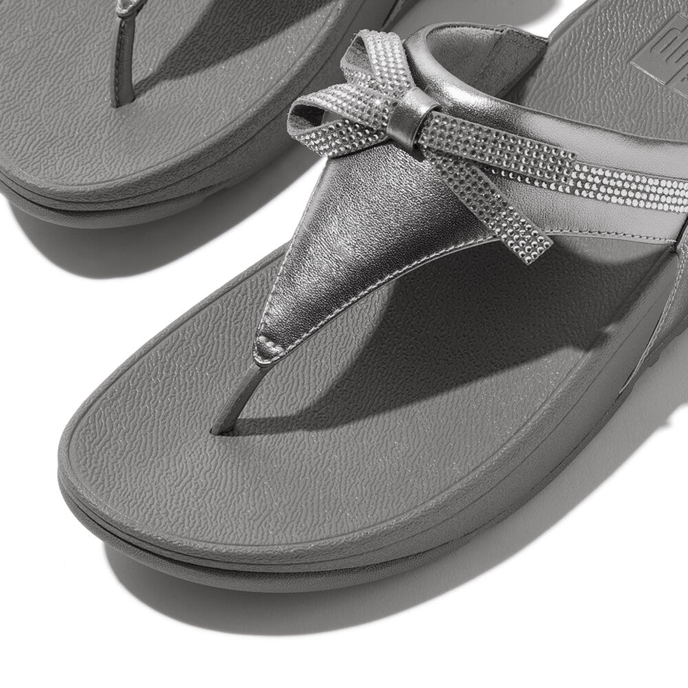 LULU GLITZ-BOW LEATHER TOE-POST SANDALS