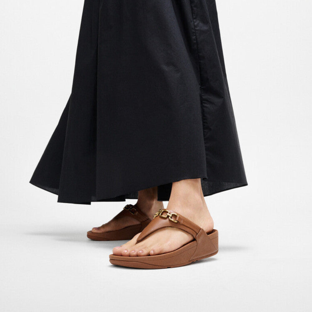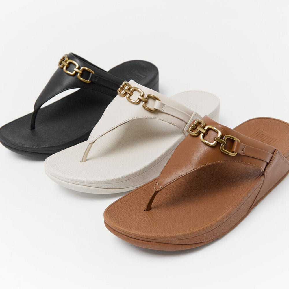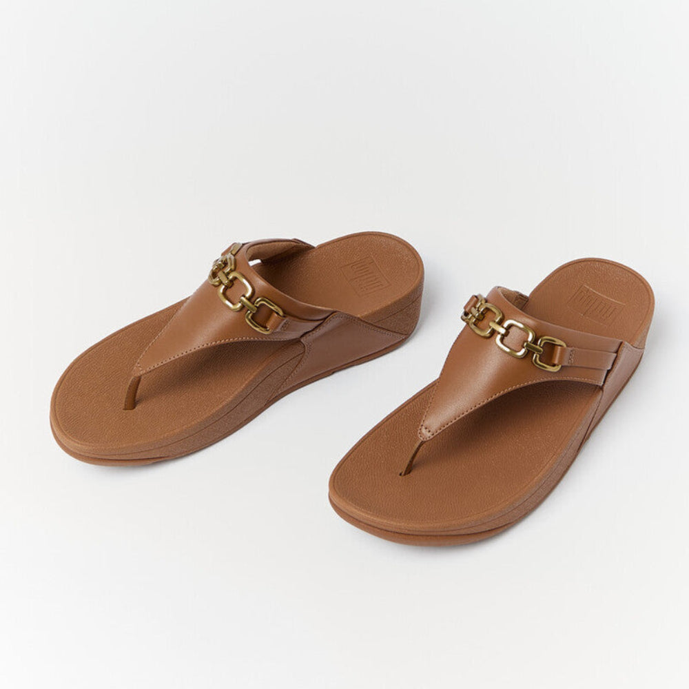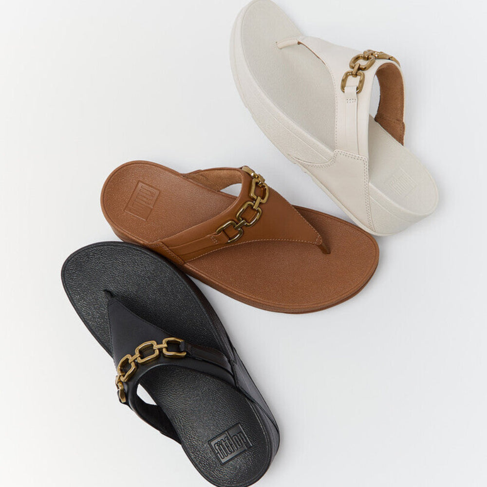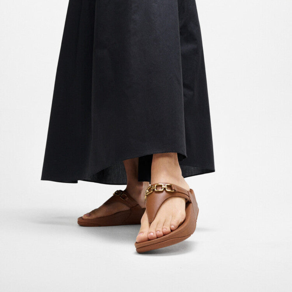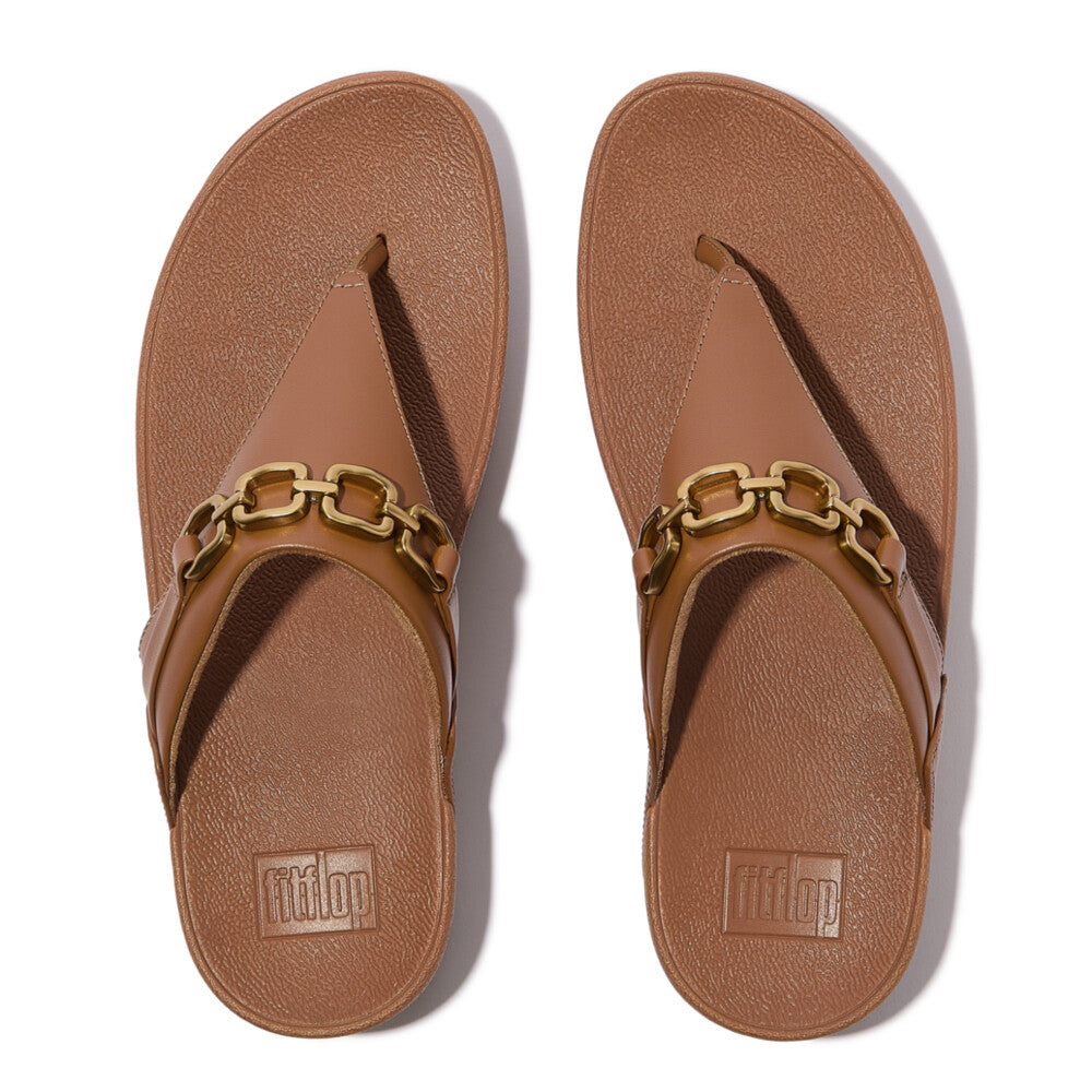 LULU SQUARE-CHAIN LEATHER TOE-POST SANDALS