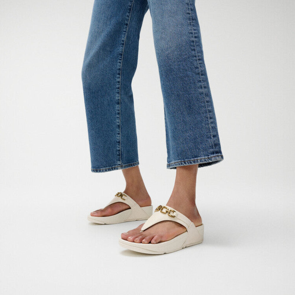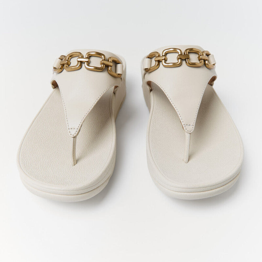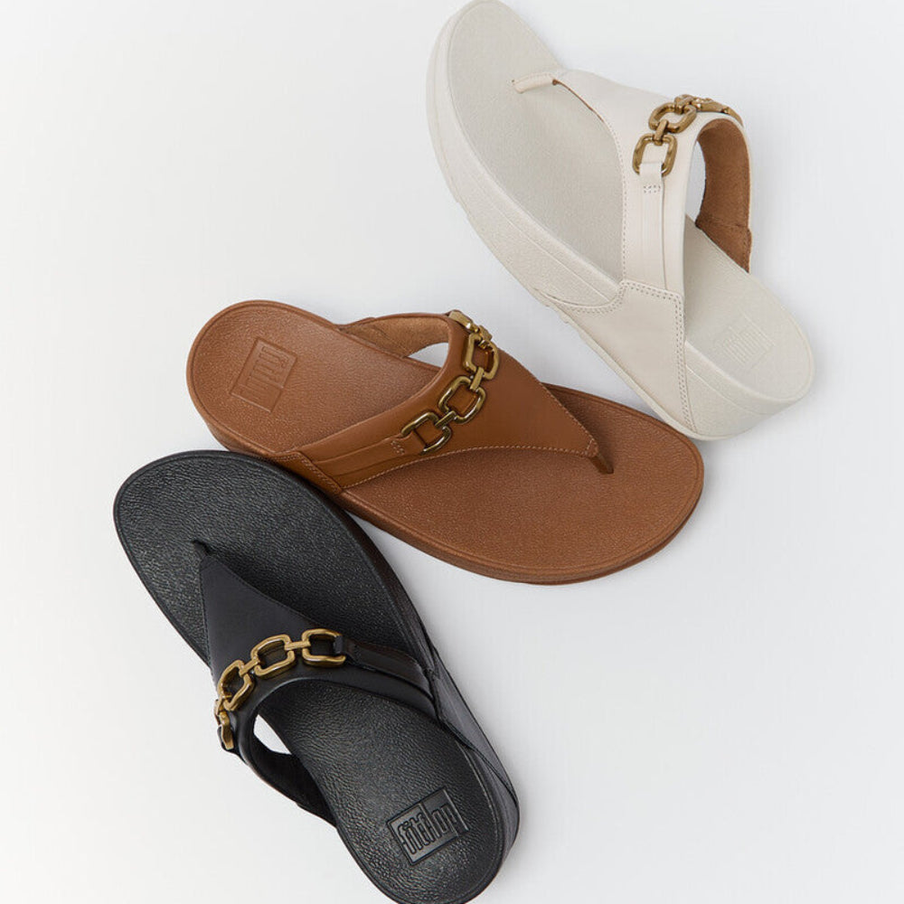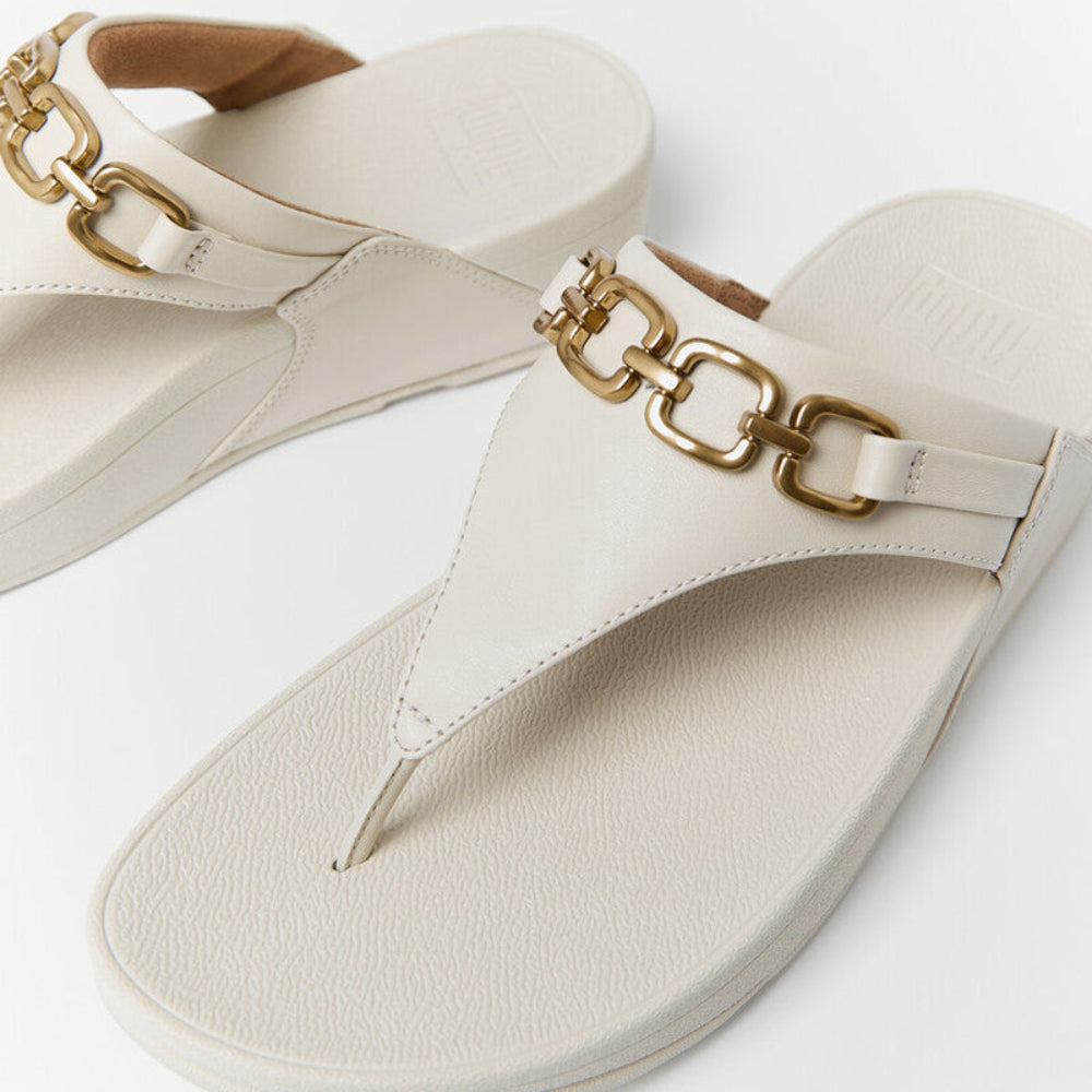 LULU SQUARE-CHAIN LEATHER TOE-POST SANDALS
