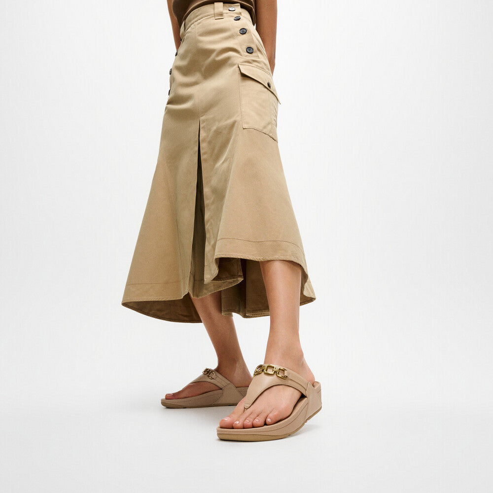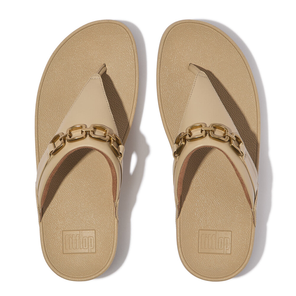 LULU SQUARE-CHAIN LEATHER TOE-POST SANDALS