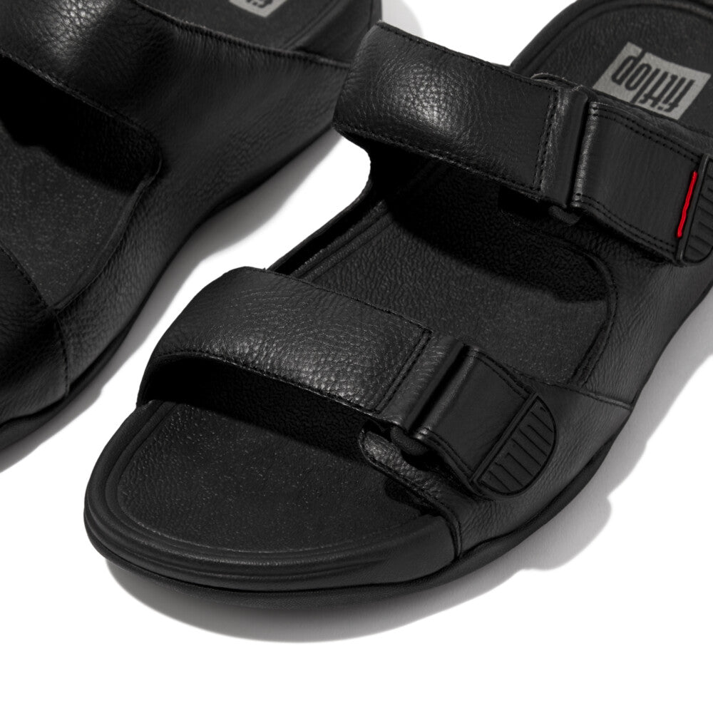 Looking for effortlessly stylish, casual sandals? These classic leather two-bar slides tick every (shoe) box. The ultimate in easy, boasting padded, adjustable, quick-fasten straps and FitFlop's ergonomic pressure-diffusing Microwobbleboard™ midsoles for amazing all-day comfort. With detailing that includes rubber-tipped straps, an embossed logo, and a FitFlop-red webbing tab. Other sandals don't stand a chance.