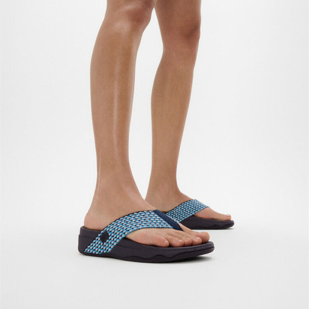Minimal, multi-purpose, a bit addictive, these Surfa flip-flops have soft foot-hugging webbing straps, a soft fabric toe post, and FitFlop's ‘magic’ supercushioned Microwobbleboard™ midsoles – in the original wide fit – making them the ultimate in relaxed cool. This season, in richly textured multi-tone webbing (100% PET polyester recycled from plastic bottle waste) featuring gorgeous colour mixes. Fun. Fabulously comfortable. Good with a wetsuit while you wax your board, with cut-offs or a sundress at the beach bar, for to-and-from your yoga class…