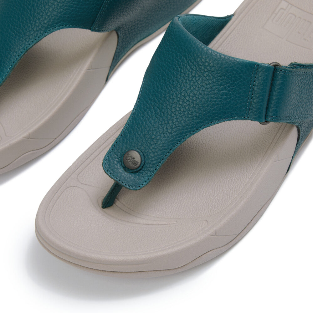 Casual. Classic. Unbeatably comfortable. It may explain why these Trakk II flip-flops are perennial best-sellers. Fuss-free leather uppers sit on FitFlop's pressure-diffusing, biomechanist-developed Microwobbleboard™ midsoles. They're adjustable. Lightly padded. With subtle branding in the form of a metal 'button' at the front, FitFlop-red tab and embossed logo. Essential if you walk a lot.