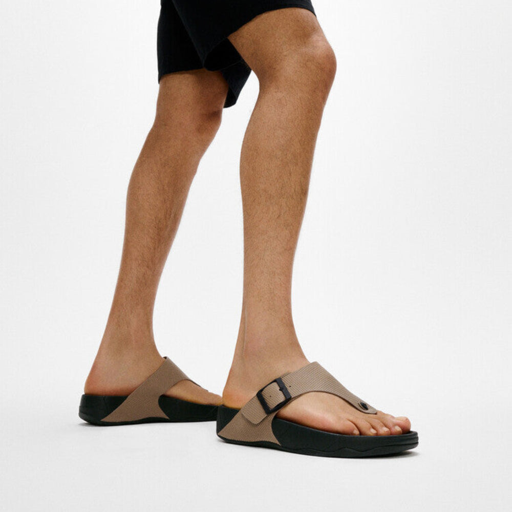 TRAKK MENS BUCKLE EMBOSSED-LEATHER T/POST SANDALS