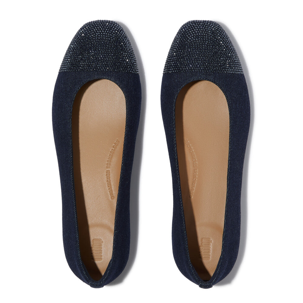 รองเท้าทรงบัลเล่ต์ ผู้หญิง รุ่น DELICATO CRYSTAL CAP-TOE DENIM BALLET FLATS