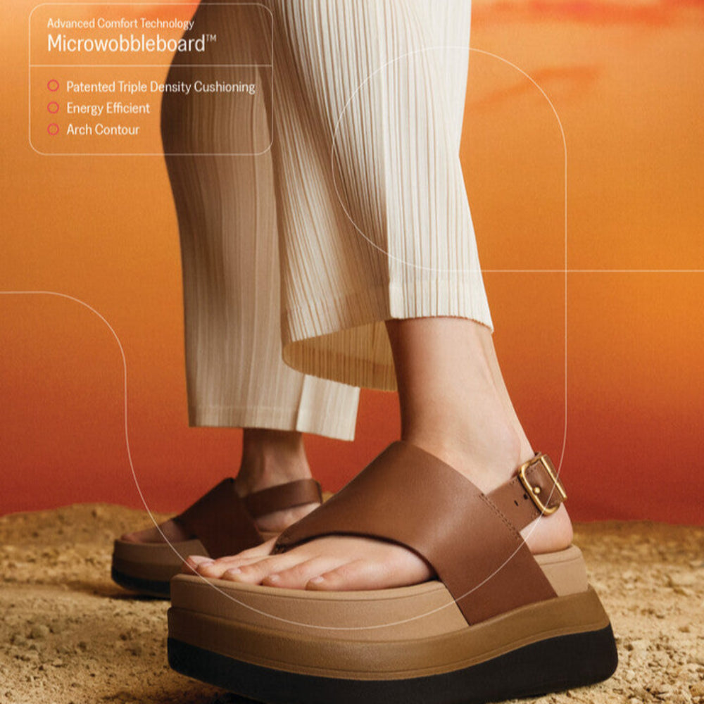 เทคโนโลยี MICROWOBBLEBOARD™ แบบ Supercushioned ของ FitFlop เหมาะสำหรับคนเท้ากว้าง ออกแบบมาเพื่อช่วยซัพพอร์ตเท้า กระจายแรงกดทับ ลดแรงกระแทกที่ส้นเท้า เพิ่มความเสถียร ทำให้การทรงตัวดีขึ้น ลดอาการเมื่อยล้าของกล้ามเนื้อ เพื่อให้คุณสามารถเคลื่อนไหวได้นานขึ้นทั้งวัน