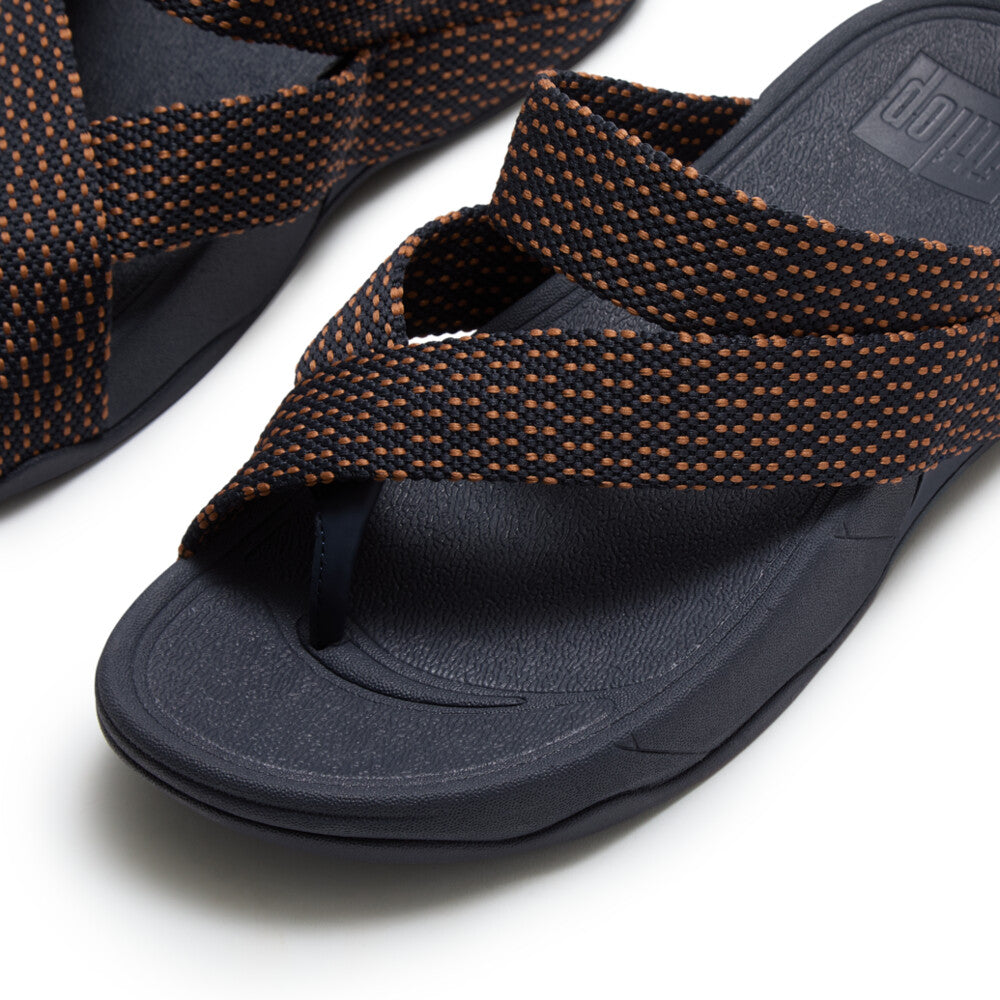 ผลิตจากสายรัด webbing แบบเนื้อสัมผัสสปอร์ต ถักลายจุดสองสี ให้ความรู้สึกมีสไตล์ มาพร้อมสายคีบทำจากหนังเทียมนุ่มพิเศษเพื่อความสบายเป็นพิเศษ ออกแบบตามหลักสรีรศาสตร์ วางบนพื้น Microwobbleboard™ อันเป็นเอกลักษณ์ของ FitFlop ที่รองรับแรงกระแทกและกระจายแรงกดได้ดีเยี่ยม อาจเป็นรองเท้าแตะผู้ชายที่ใส่สบายที่สุดเท่าที่คุณเคยเจอ